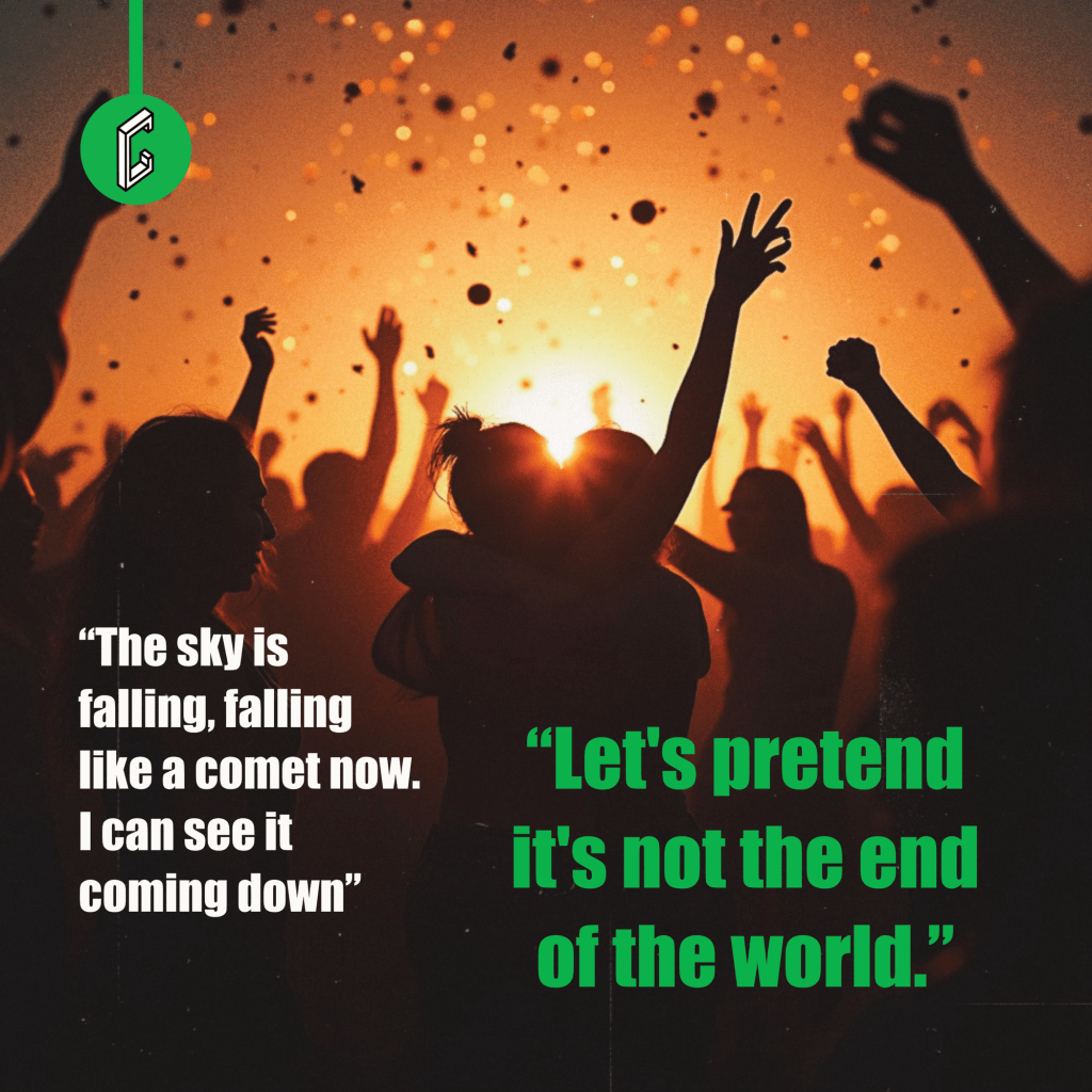 I can definitely see a political layer to this line “The sky was fallin’ like a comet on the Fourth of July”. The Fourth of July is supposed to be a celebration of American strength. To picture that sky falling feels like a pointed commentary, a sense that things are breaking within the country. It’s a feeling that resonates with a broader sense of unease, a feeling that endings, in various forms, are becoming more tangible.