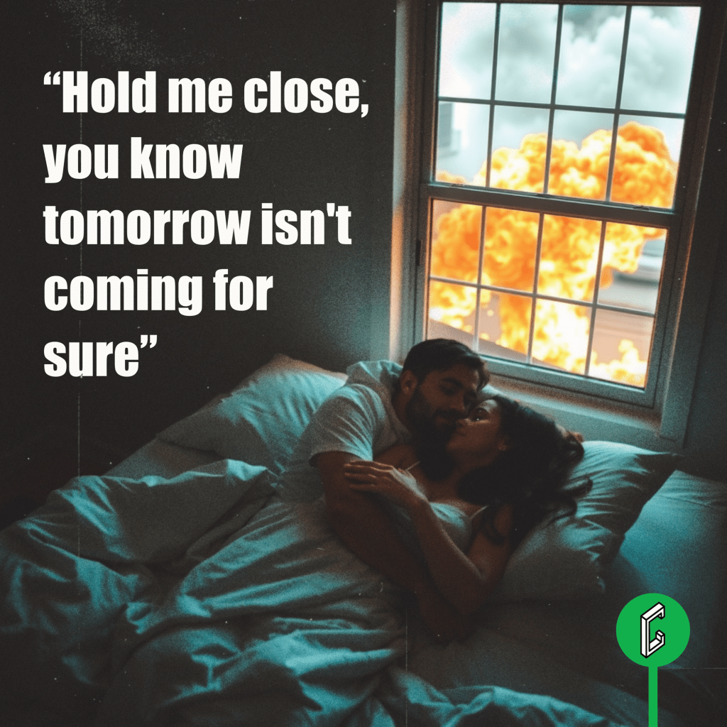 Beyond the nostalgia of the end and the call to seize the day, these lyrics are undeniably romantic. It’s a simple yet profound love letter to someone you want to spend your final moments with, doing the things you love most (is there anything more romantic than that?). I especially love the line, “Show me how you’d hold me if tomorrow wasn’t comin’ for sure,” particularly the final repetition, which shifts from a hypothetical to an obvious statement: “Hold me close, you know tomorrow isn’t coming for sure.” This is it. This is the last day.