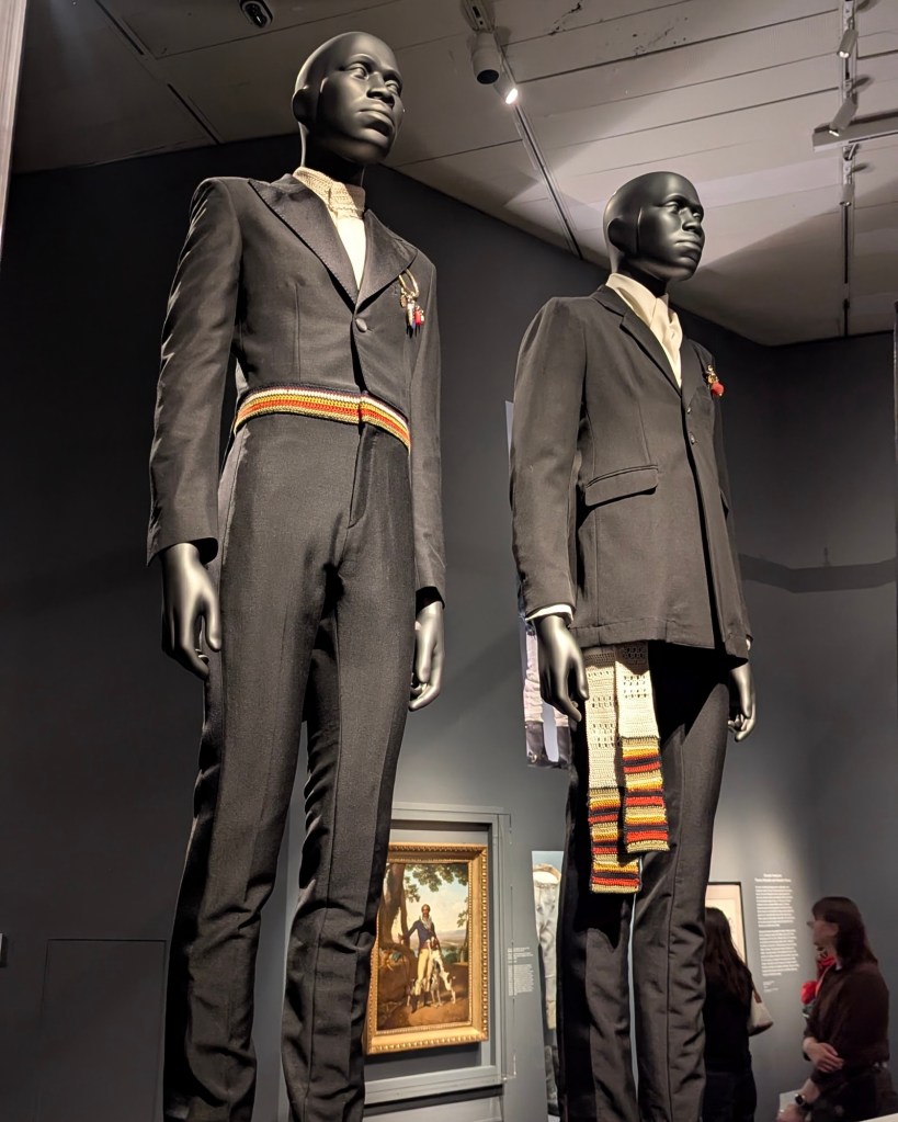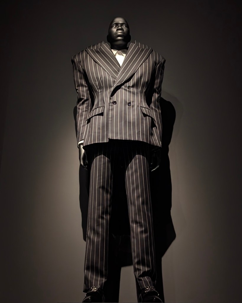 While the Met Gala buzz is exciting, I had several compelling reasons to experience “Superfine: Tailoring Black Style” firsthand (yes, I went on the very first day!): Unlike most fashion exhibitions that focus on women’s wear, this one exclusively showcased men’s fashion, offering a fresh perspective and some inspo I can actually picture myself rocking. A significant part of the Dandyism movement unfolded during the Harlem Renaissance, right in my neighborhood, adding a personal connection. Plus, the exhibition celebrates a powerful cultural movement rather than being a tribute to a single figure with a controversial past (if you know you know). And most importantly, Dandyism resonates with my own belief that fashion is a powerful tool for self-definition and a form of “contemporary armor”, allowing us to express who we are, regardless of others’ opinions.